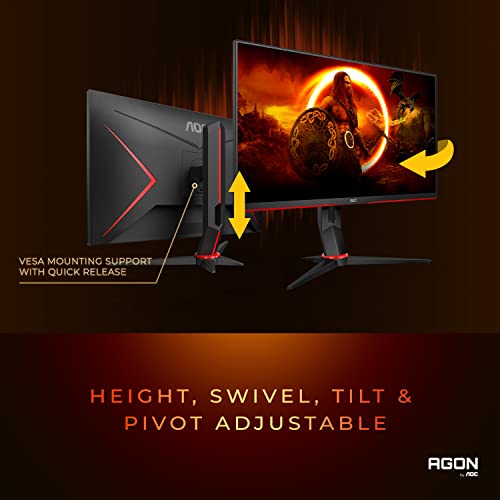 Unleash your potential and win sweet victories with the AOC 27G2S gaming monitor- a sleek battle station with FHD resolution, 165Hz lightning-fast refresh rate and 1ms MPRT rapid response time. Certified G-SYNC compatible, you get low latency, high refresh rates, and incredibly smooth graphics that react instantly to what’s happening on screen. Maximize the performance of your consoles by unleashing up to 120Hz frame rate (exact performance depends on consoles) and ultra low latency, giving you an edge over your opponents. Thanks to the 178/178 degree extra-wide viewing angle, you can witness consistent colors on the 27-inch VA panel from a wide range of viewing angles, with up to 121.94% sRGB area coverage. The included stand is pivot, swivel and tilt adjustable to provide each user with an optimal viewing angle, more comfortable for extended gaming and computing sessions. The monitor is also VESA compatible, allowing you to quickly change to another type of mounting solution.