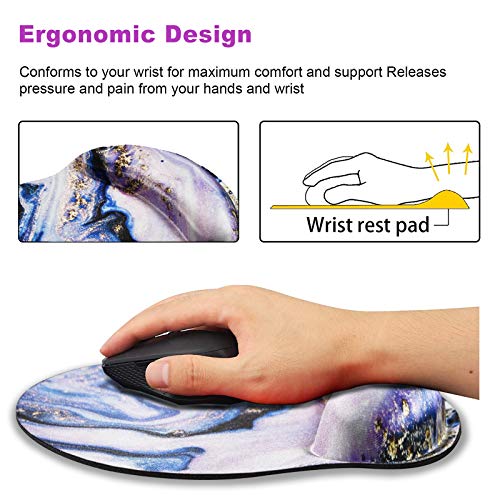 ARTSO Ergonomic Mouse Pad with Wrist Rest Support Gel, Non Slip Rubber Base Pad Computer PC Laptop Women Men Mousepad for Home, Office, Gaming, Working Easy Typing, Pain Relief, Purple Marble