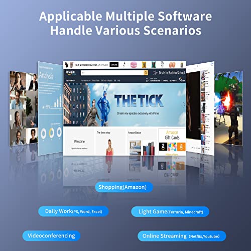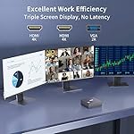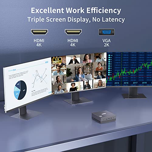 【High-efficiency Triple Screen Display & Multiple Ports】Compact but powerful mini pc with rich interfaces(2*HDMI, 1*VGA, 4*USB 3.0, 1*USB-C, 1*RJ45), enables you to connect with more devices, such as projectors, monitors, speakers, keyboard, mouse, and office equipment. Excellent triple display design with 4K UHD Graphics, greatly promote your work efficiency and productivity and deliver you an unbelievable high-definition visual experience.
