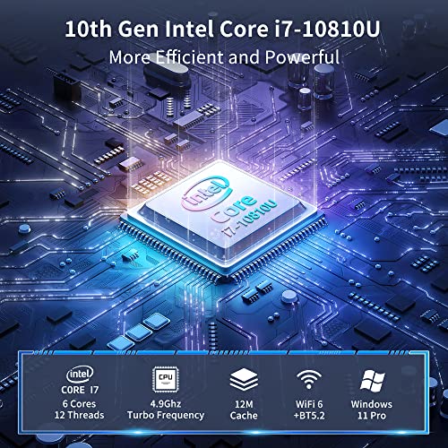 Mini PC Windows 11 Pro, Intel i7 10810U (up to 4.9 GHz) Mini Computers 16GB DDR4 512G M.2 2280 SSD, 6 Cores 12 Thread Small Desktop Computers WiFi5/BT4.2/USB3.0/4K HDMI VGA, Support Auto Power On