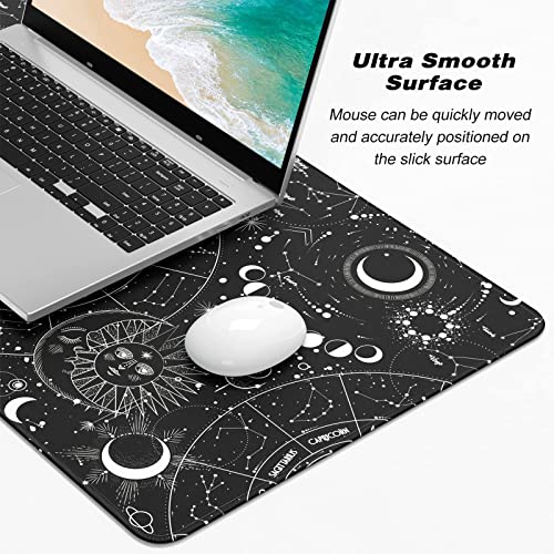 Atufsuat Extended Gaming Mouse Pad, XXL Large Desk Pad 30 x 14 Inch, Big Computer Keyboard Mousepad, Waterproof Mouse Mat with Stitched Edges and Non-Slip Base for Women Office Gaming, Sun Moon