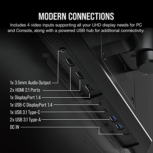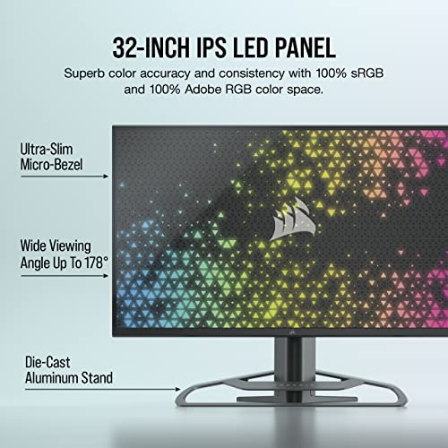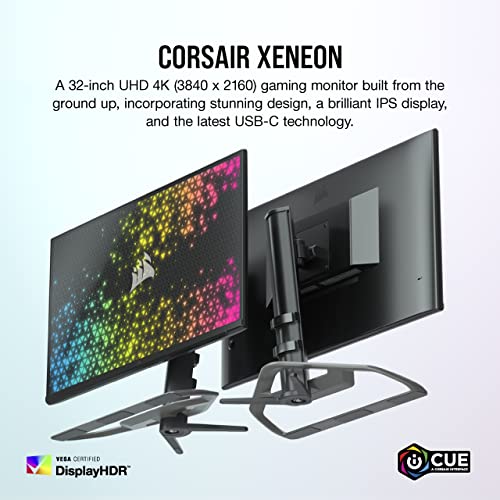 The CORSAIR XENEON 32UHD144 brings your games and media to life on a vibrant, ultra-slim 32-inch UHD 4K (3840×2160) display with IPS LED technology. A 144Hz refresh rate and 1ms response time reduces motion blur and ensures you see every frame your PC outputs, while NVIDIA G-SYNC® Compatibility and AMD FreeSync™ Premium delivers smooth, tear-free visuals. Enjoy a 100% sRGB and 100% Adobe RGB color space with high contrast thanks to Quantum Dot technology and HDR600 support. With a premium die-cast aluminum stand and a wide range of connection options including USB Type-C, 2x HDMI 2.1, and 1x DisplayPort 1.4, and an integrated hub with USB Type-C and Type-A ports, the CORSAIR XENEON 32UHD144 offers a truly spectacular view.