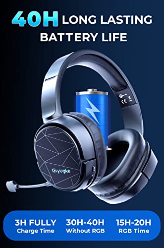 Gvyugke 2.4GHz Wireless Gaming Headset for PS4, PS5, PC, Nintendo Switch, Bluetooth 5.2 Gaming Headphones with Mic for Mobile Device, Noise Canceling, Bass Surround, 50mm Driver, 40H Battery