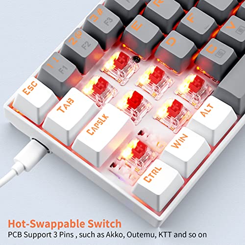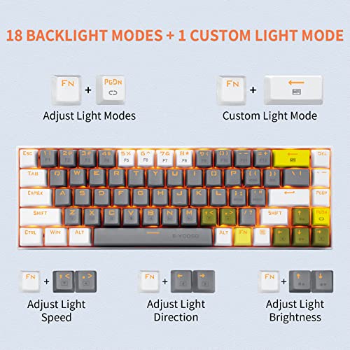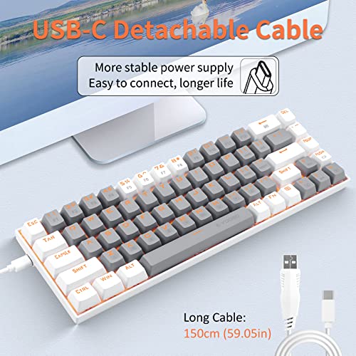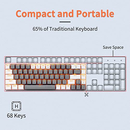 HUO JI 65% Gaming Keyboard, E-YOOSO Z-686 Wired 68 Keys Mechanical Keyboard, Linear Red Switches, Led Backlit, Detachable Cable, Separate Arrow Keys – Grey/White