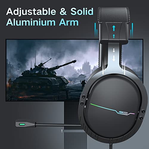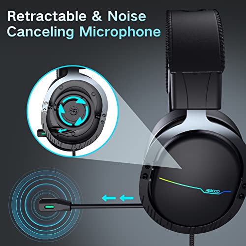 Jeecoo J75 USB Gaming Headset for PC – 7.1 Surround Sound, Retractable Clear Microphone, Ultra-Soft Memory Foam Ear Pads, Flowing RGB Lighting – Compatible with Laptops Desktop Computers