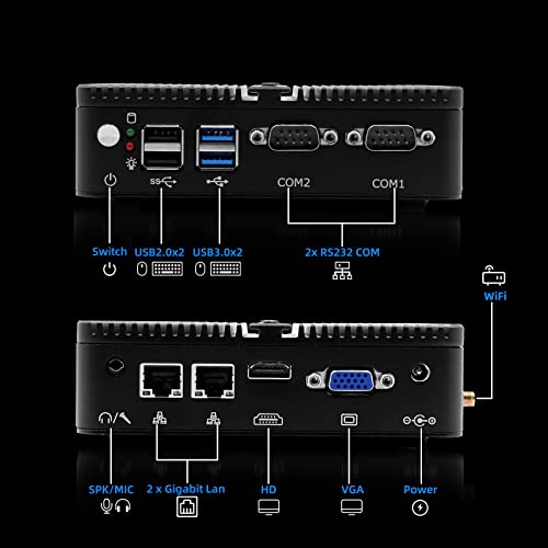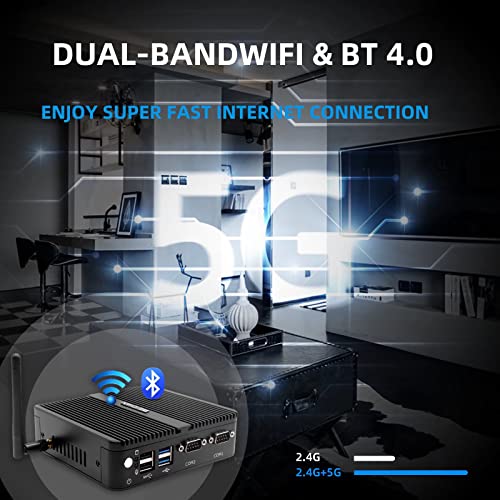【Dual Band WiFi + Dual RJ45 Gigabit Ethernet】➨Mini Desktop PC supports 2.4G + 5G dual band WiFi and this office PC supports Bluetooth 4.0, 2 x USB3.0, 2 x USB2.0, 2 x RJ45 Gigabit Ethernet port, 2 x RS232 Com port, 1x 3.5mm earphone jack which can be connected to your multimedia devices, mouse, acoustics or headset. PC Mini supports multiple device connection and can be used with servers, monitoring equipment, office equipment, displays, projectors, televisions, etc.