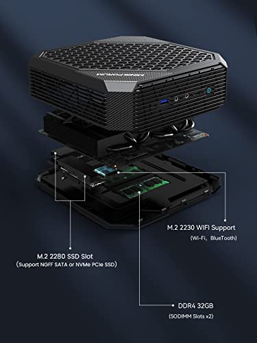 【Upgradeable RAM/SSD memory】HX80G Mini PC is equipped with a 512GB PCIe SSD and 32GB DDR4 3200MHz RAM memory in Dual Channel. Feel free to upgrade it with another NGFF SATA or NVMe PCIe SSD disks up to 2TB, and RAM memory up to 64GB.