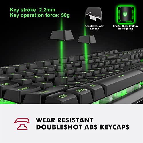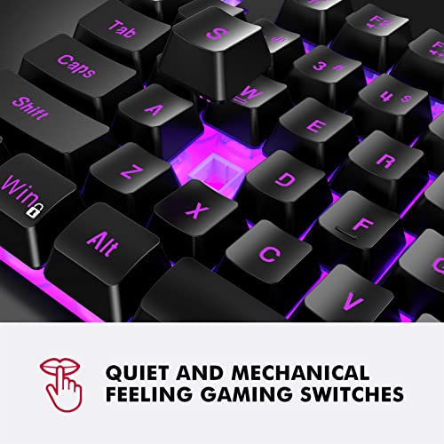 Durable Full-Sized Gaming Keyboard: Made with highly-resistant ABS plastic and metal base for longevity, and durability. With a mechanical brown switch gaming feeling that delivers precise tactile feedback and responsiveness.
