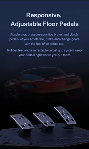 【REALISTIC 3-PEDAL PEDALS】: The 3-pedal pedals provide a real racing experience, with linear pedals that self-adjust gas threshold and brake threshold levels according to step strength. The texture and slide-proof design enhance pedal control, giving you a more realistic and precise racing experience.