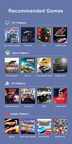 【SUPPORTS A VARIETY OF RACING GAMES】: The PXN V9 racing wheel supports a wide range of racing games, including Forza Horizon 4/5, iRacing, European Truck Simulation, Truck Life, Maxthon China, Shenli Corsa, Need for Speed 20, F1 2019, Super Touring Car, Driving Club, Asphalt, Sonic Racing, Mario Kart, and more.