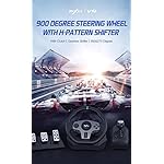 【270&900 DEGREE ROTATION】: With physical buttons to shift between 270 and 900 degrees, the racing wheel is versatile and easy to operate. The 900-degree rotation is perfect for driver games like Euro truck simulator and American Truck Simulator, while the 270-degree rotation is ideal for racing games like Need for Speed, Horizon 4, and GTA5.