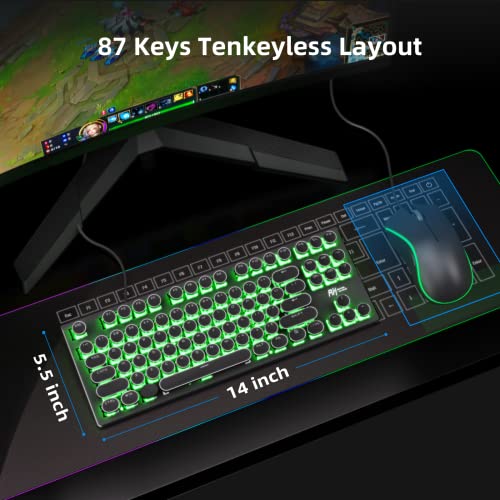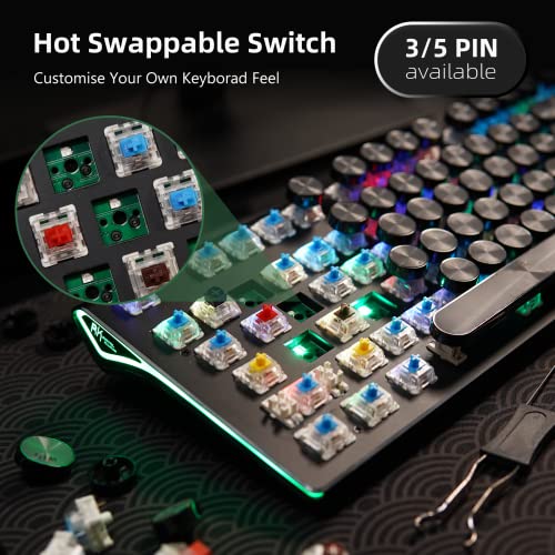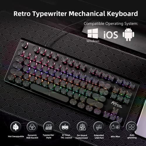 RK ROYAL KLUDGE RKS87 Typewriter Mechanical Keyboard, Hot Swappable Blue Switch Wired PC Gaming Keyboard, RGB 87 Keys Slim Compact Keyboards with Retro Punk Round Keycaps for Mac Windows, Black