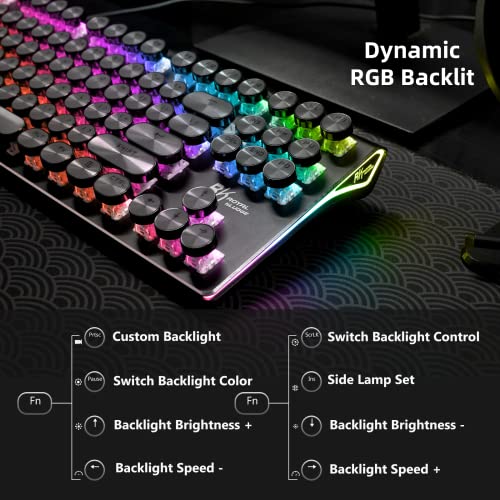【Compact Retro Typewriter Style Mechanical Keyboard】RK ROYAL KLUDGE RKS87-A perfect combination of typewriter style and PC gaming keyboard. Retro steam punk round keycaps learn the design from vintaged typewriter. 75% compact keyboard layout saves up to 25% desktop space than full size mechanical keyboard, and geared with practical arrow keys and multimedia key. Well boasts both practicality, the full-function and compact characteristics of PC gaming keyboard
