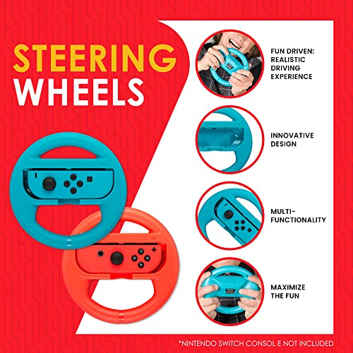 Switch Accessories Bundle Prestige Edition for Nintendo Switch – Travel Storage Case with Screen Protectors, TPU Cases, Steering Wheels, Joy-Con Handle, Rackets – Portable Gaming Set by EVORETRO