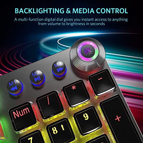 Blue Switch: Mechanical keys with precise actuation, audible click sound, tactile feedback and a lifetime durability of 50M keystrokes, ideal for both play and work.