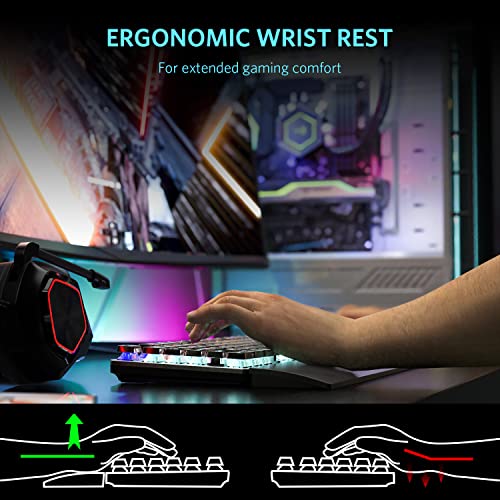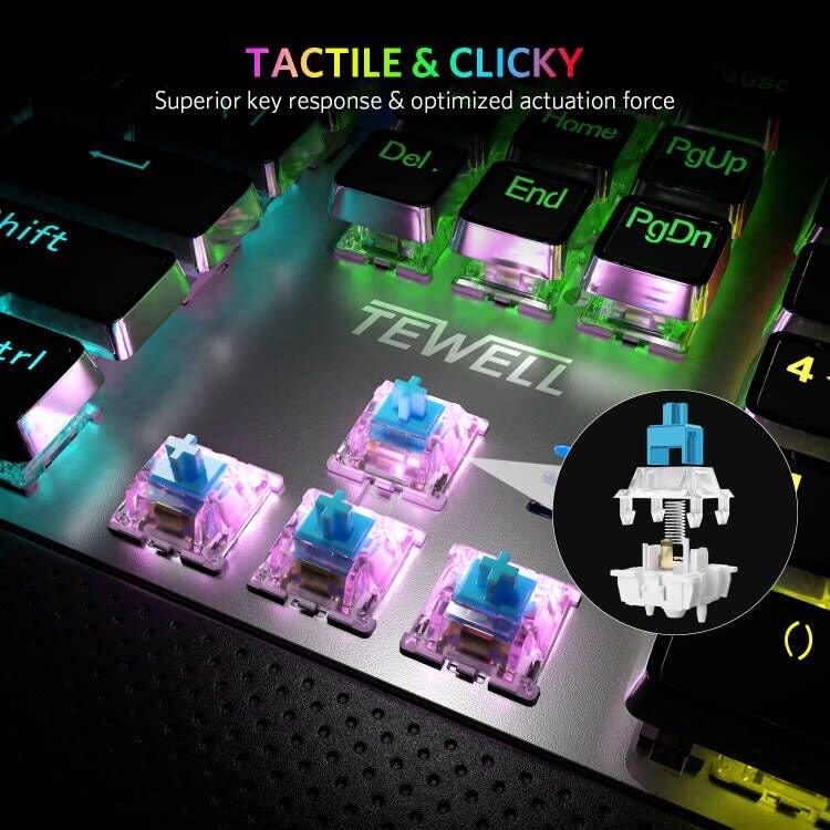 TEWELL Quick Responsible Blue Switches Mechanical Gaming Keyboard, Rainbow LED Rainbow Backlit Typewriter Keyboards with Removable Hand Rest, 104 Anti-ghosting Keys, for PC, Laptop, Computer