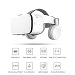 ✔ INNOVATIVE [FOLDABLE + RECHARGEABLE] BLUETOOTH VR HEADPHONES: VR headset equiped with most advanced foldable bluetooth headphones, makes the VR more compact to store and carry. Most importantly, it gets rid of the converter trouble. Charge for 2.5 hours for 25 hours use. It also comes with a free gift of bluetooth remote controller powered by AAA batteries(not included), which used to adjust volume/return to menu/music shift/self shutter etc, simple remote, not gamepad